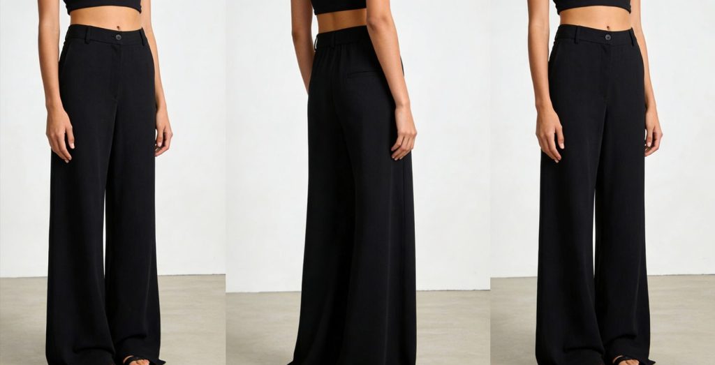 - High-waisted straight-leg or wide-leg floor-grazing pants: Stick to neutrals (black, beige, gray) and a length that grazes the floor—no too-short hems!