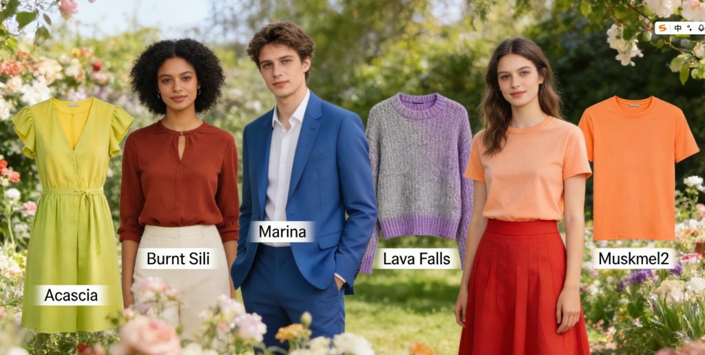 Orange is often overlooked in spring fashion, but 2026 is changing that—thanks to Muskmelon. This sweet, juicy orange feels like a ripe muskmelon on a hot day—fresh, energetic, and universally flattering. It’s brighter than a muted peach but softer than a neon orange, making it accessible for everyone. Muskmelon is a warm tone, so it works particularly well with warm skin tones, but cool skin tones can wear it too (pair it with Marina Blue to balance the warmth). It’s perfect for casual outfits: a Muskmelon t-shirt with denim shorts, or a linen dress for a day at the park. It also pairs beautifully with Acacia for a sun-kissed, summery vibe. If you’re looking for a fun, approachable bold color, Muskmelon is it.